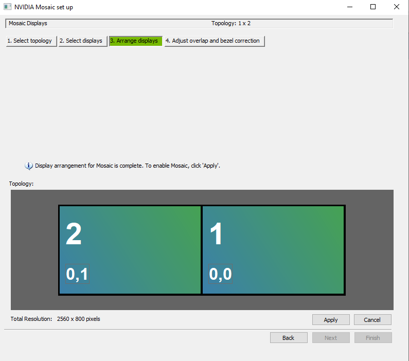 A successful MOSAIC setting for the above shown display setup looks like this: