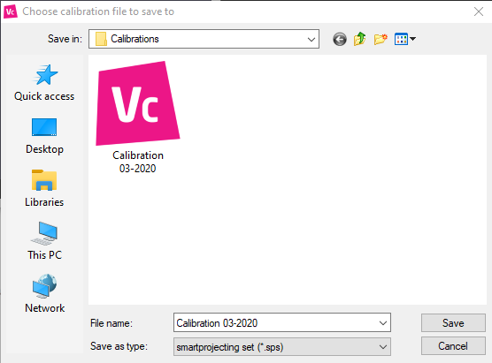 Saving takes a noticeable amount of time and requires a lot of disk space. Do not interrupt the saving procedure, even if it takes minutes (depending on the resolution of projectors and camera) and make sure that there is sufficient space on the disk or drive.