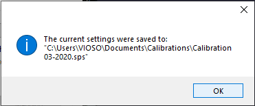 The full calibration settings need to be saved. Select ‘File – Save Settings’ to write a full Calibration Dataset (SPS) to disk.