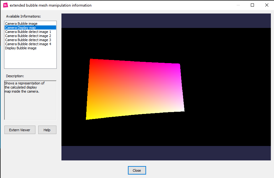 => In such a case, increase the extrapolation distance incrementally until a sufficient coverage of the projector is achieved. Setting the mark on “whole” display will extrapolate all projector pixels – required if projectors do not have any overshooting.