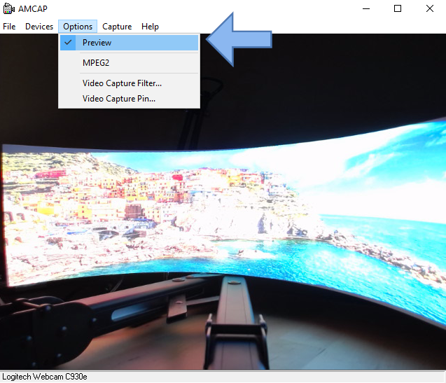 Click on the ‘Options’ menu. Press ‘Preview’ to display the current image of the selected camera.