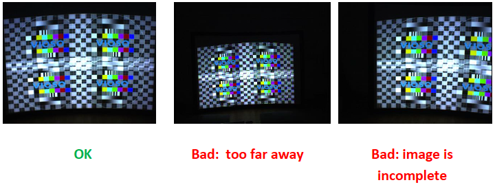 Ideally, the projected image fits entirely in the camera image, filling it to a great extent: