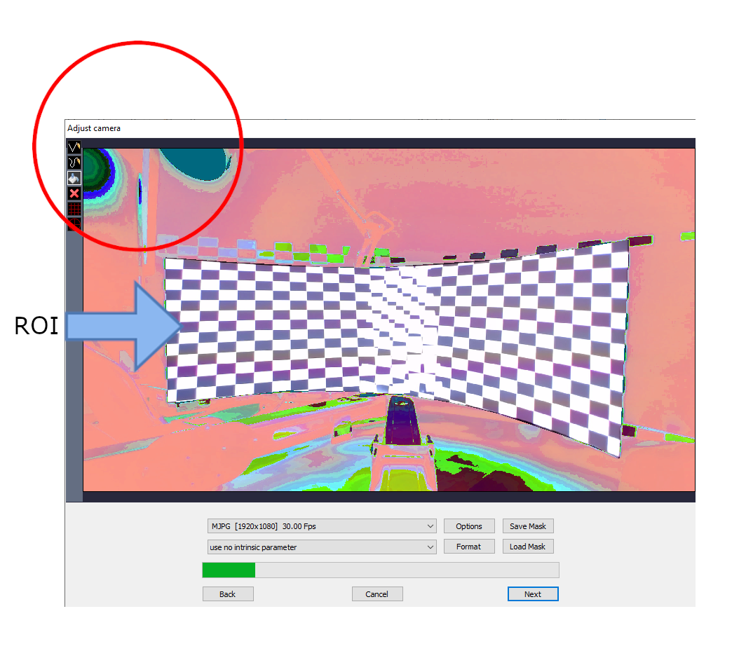 With the help of the masking tools, create a region of interest mask by selecting the desired scan area (your projection surface).