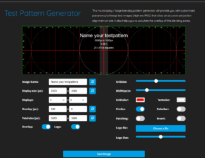 A test pattern is necessary for a setup. It can be created fully automatically on our homepage (products / test patterns) or is created automatically in 3D mode. It is used to set up the projection in the correct aspect ratio, or to facilitate and verify the mapping.