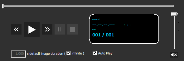 The access to the player is located in edit mode. Pressing the player button opens the player window.