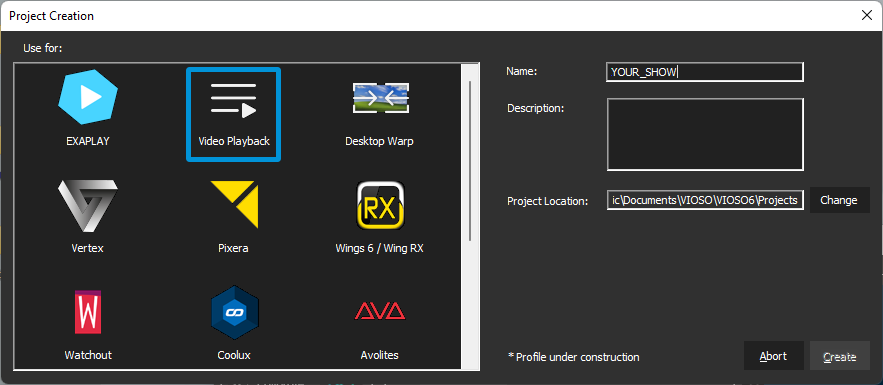 In the project mode, the selection of the future use must be started at the beginning of the creation of a project.
