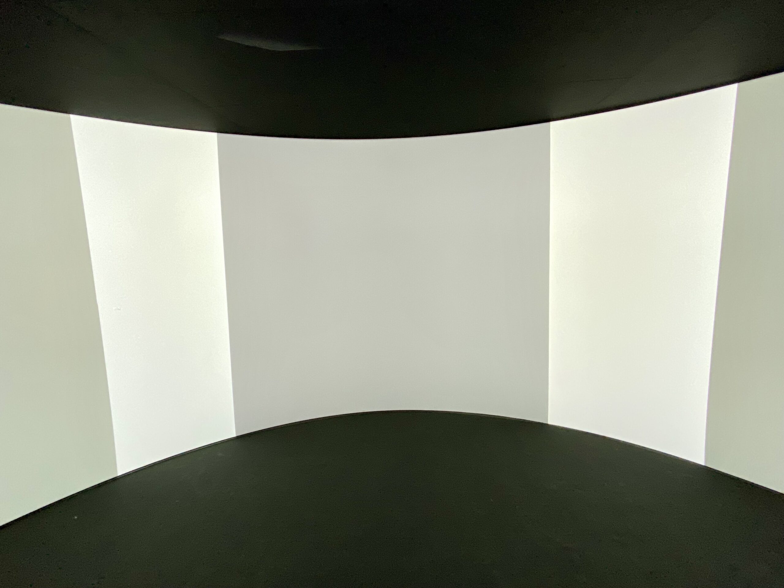 This approach assumes that the screen geometry is cylindrical, which means that it has one radius and even height. For more complex screen geometries like cones, elliptical screens, etc. you need to create a custom 3D model including a proper UV map (even pixel distribution) that matches precisely the physical screen geometry.