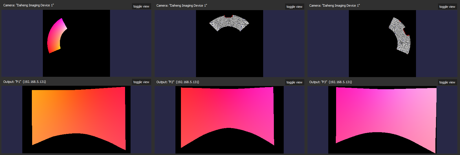 As a result, the whole screen should be covered with the testing pattern, getting a fairly good geometric alignment (not 100% accuracy is required at this step unless you go for seamless 360° panoramas):