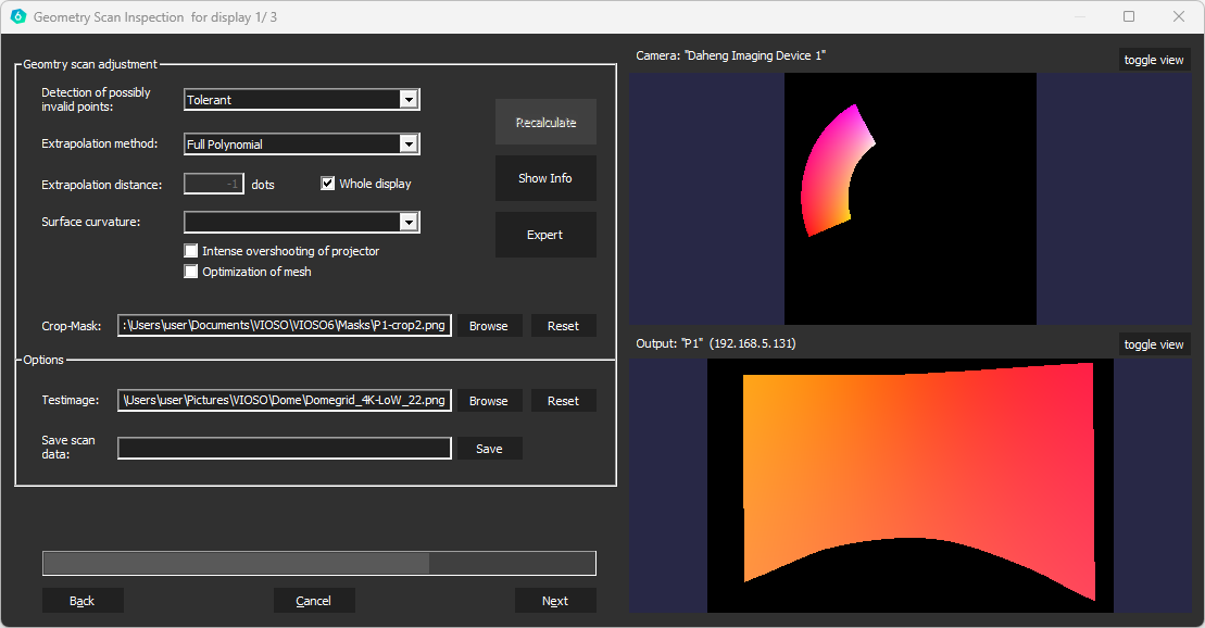 Depending on the camera resolution and the number of projectors, this transformation can take several minutes. Make sure not to interrupt this transformation, which is executed automatically.