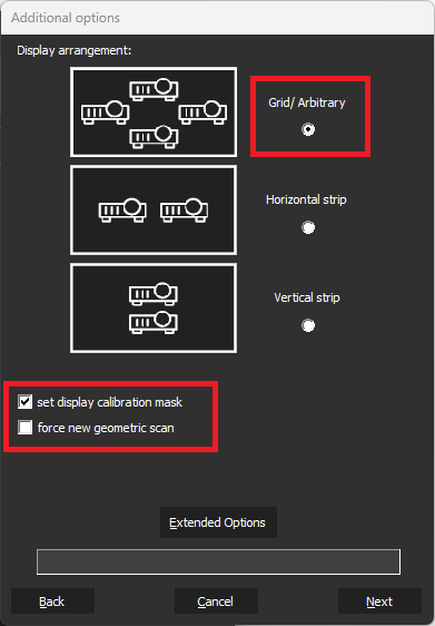 - Check “set display calibration mask” to create masks on projectors => strongly recommended