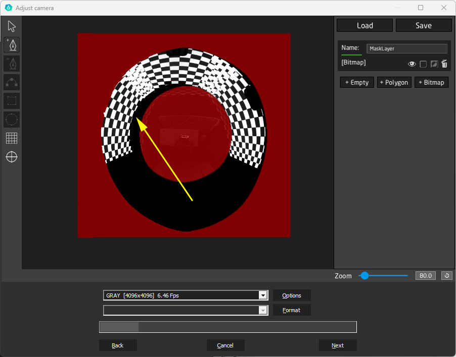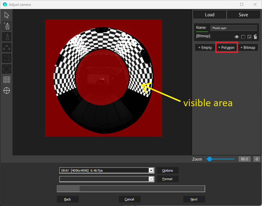After positioning and finetuning, create a mask to have the camera view limited to the visible area (=area of interest). It’s important to mask anything that could distract the scanning like reflective areas, light spots, etc.