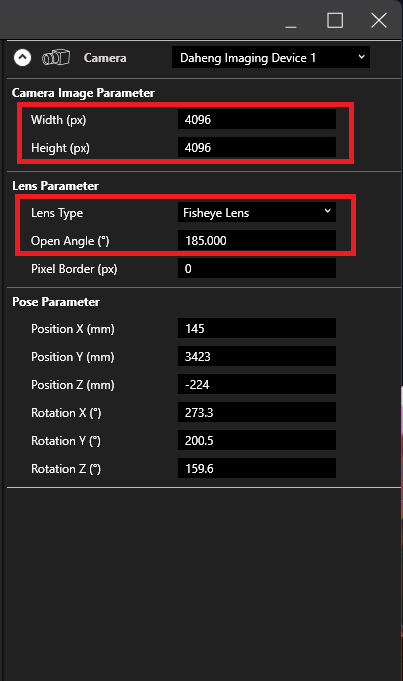 - If you know the position and rotation of the camera in relation to the screen, you can enter the values below “Pose Parameter”, otherwise keep them set to 0 since the parameters can be set in the “Add 3D” step later in this process